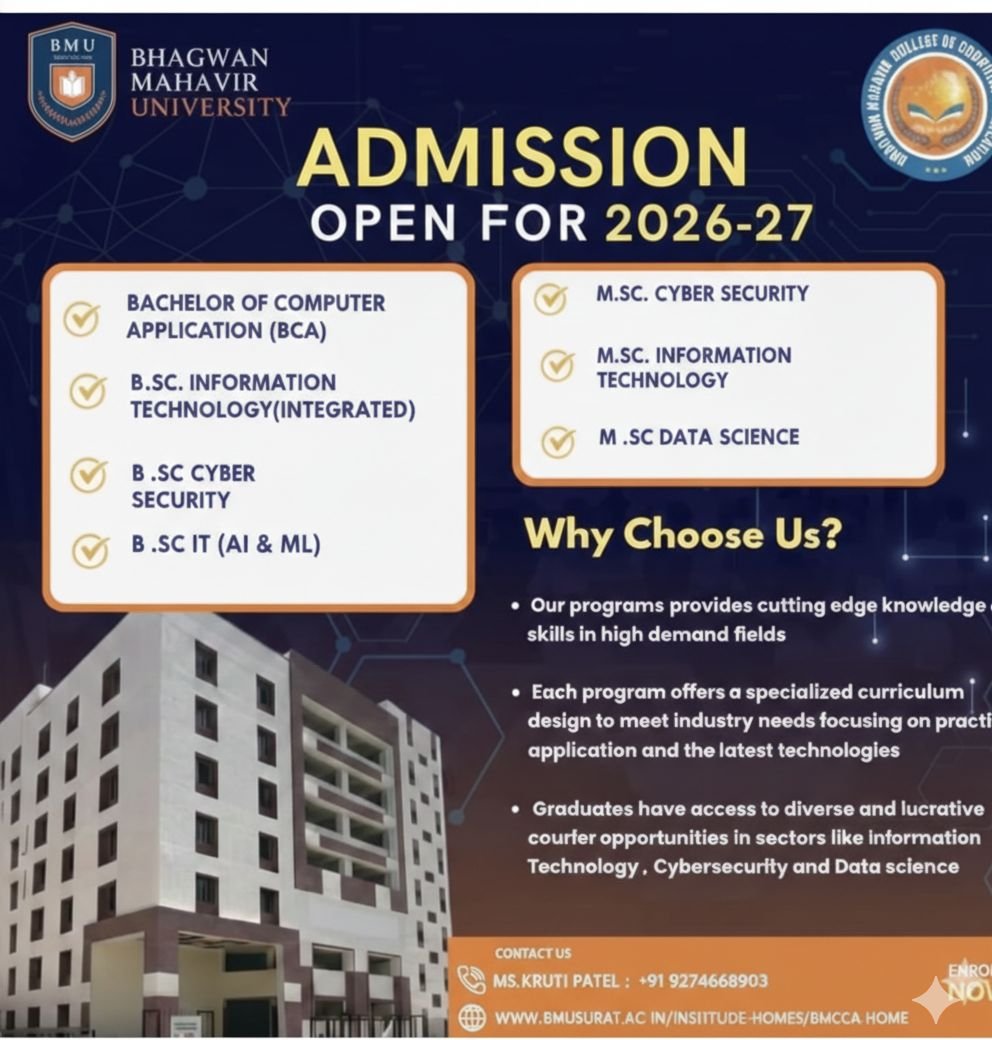 Bhagwan Mahavir College of Computer Application (BMCCA), a proud part of Bhagwan Mahavir University, stands as a premier institution dedicated to nurturing future-ready IT professionals. Since its inception, BMCCA has been committed to delivering quality education in the field of computer applications, combining academic excellence with practical learning.
