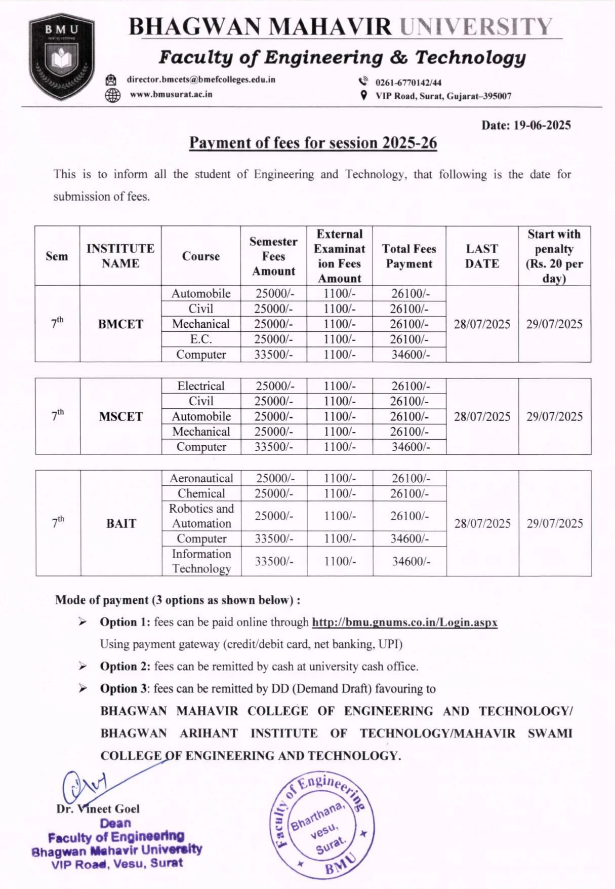 | 19/06/2025 | Fees Circular - Semester 7 - 2025 | file-1755857544288-file-1755758337959-Fees_Circular_page-00.webp |